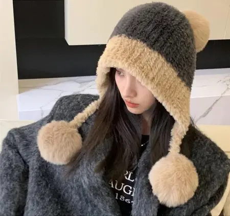 หมวกกันหนาวไหมพรมให้ความอบอุ่นในฤดูหนาว มีปอมๆๆ น่ารักสำหรับผู้หญิง