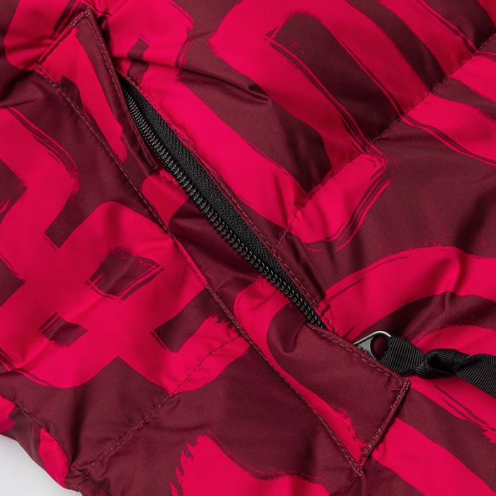 - ตัวเสื้อ ผ้าเสริม และซับในผลิตจากไนลอนรีไซเคิล 100%; ผ้าพิมพ์ผลิตจากโพลีเอสเตอร์รีไซเคิล