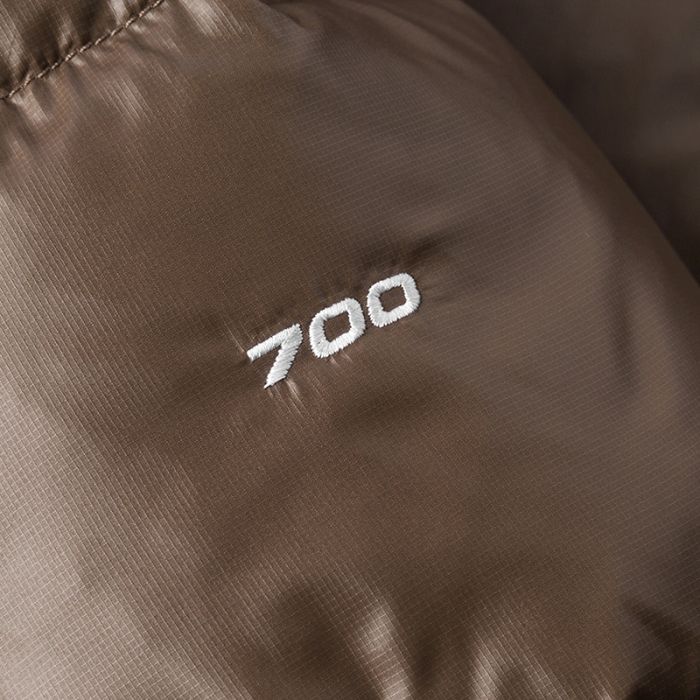 - เสื้อแจ็คเก็ตดาวน์ขนาดใหญ่ทำจากผ้าไนลอนริปสต็อป พร้อมการบรรจุขนห่าน 700 RDS และการออกแบบทรง A-shape